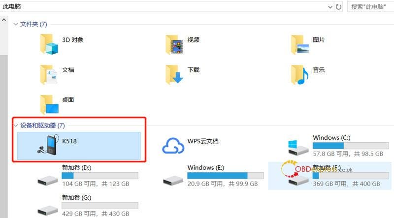 گام 2. رایانه خود را از طریق کابل USB به Lonsdor K518 خود متصل کنید و دستگاه K518 را در سیستم مدیریت فایل رایانه خود پیدا کنید.