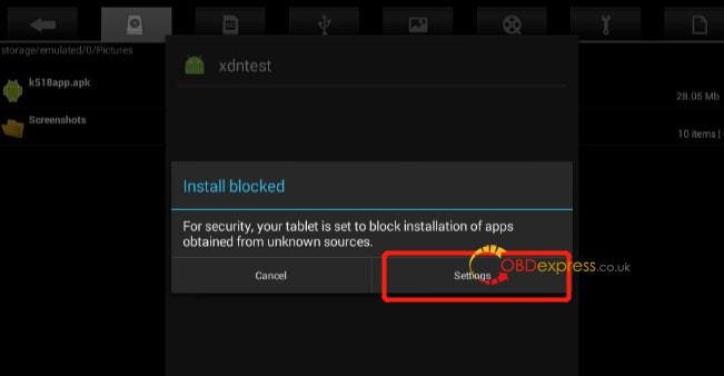 مرحله 8. روی "مدیر فایل >> ذخیره سازی >> شبیه سازی >> 0 >> عکس ها >> K518app.apk >> تنظیمات >> "منابع ناشناخته" را انتخاب کنید >> تأیید کنید.