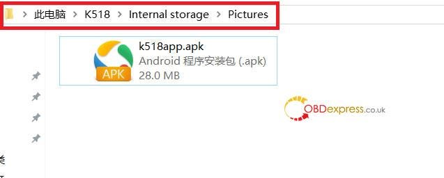 مرحله 3. فایل K518 app.apk را در فهرست "This Computer\K518\Internal storage\Pictures" کپی کنید.